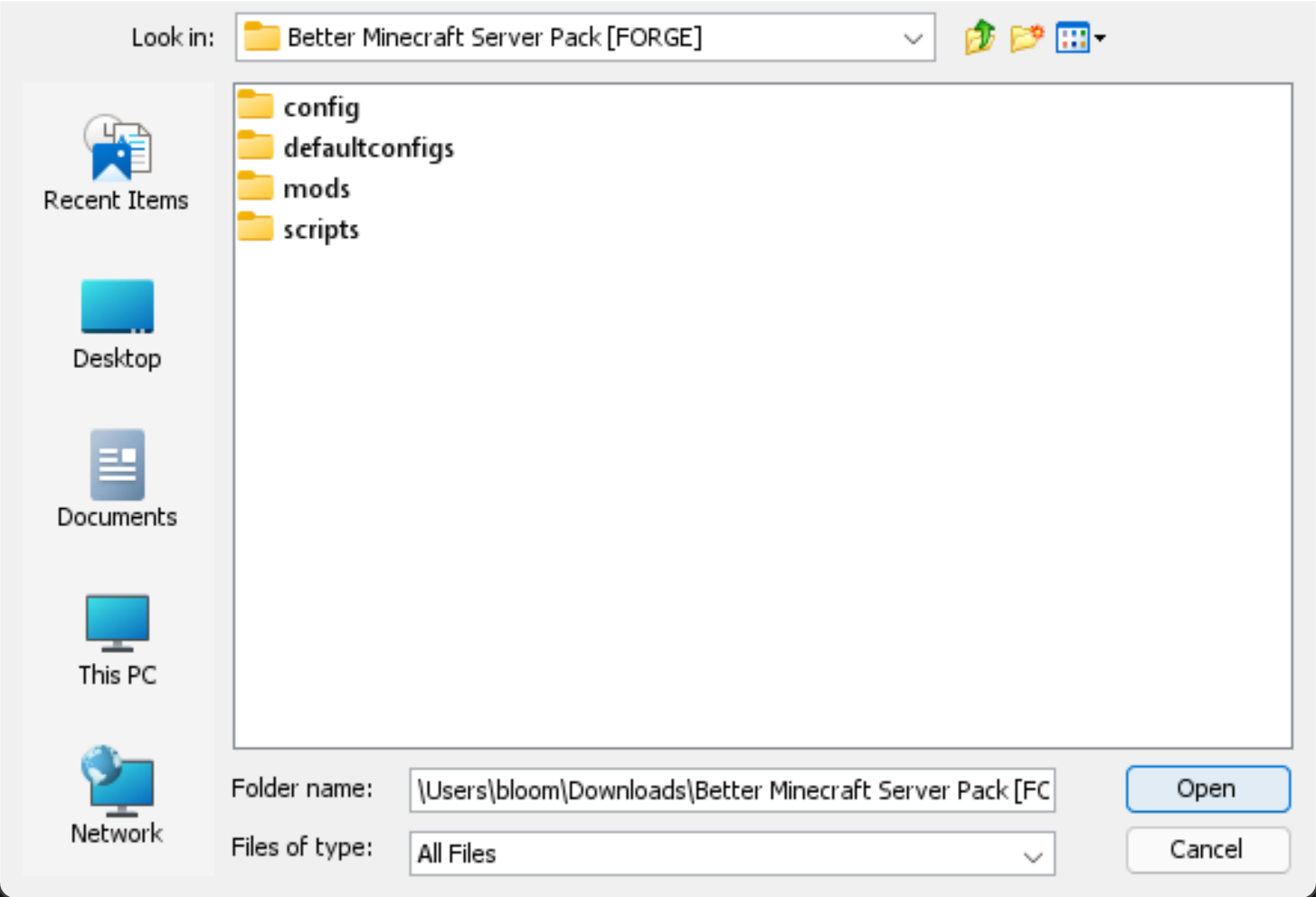 This tutorial only applies to server packs that don't come with Forge installed. if the server pack comes with Forge installed you just need to upload the files to your Bloom server and start the server with the Forge .jar (not the one that says minecraft_server.jar).